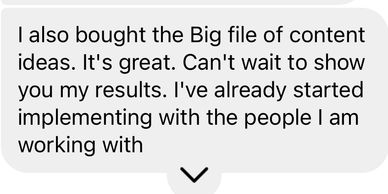 Click the button below to get instant access to THE BIG FILE OF CONTENT IDEAS and start creating in the next 1 hour!